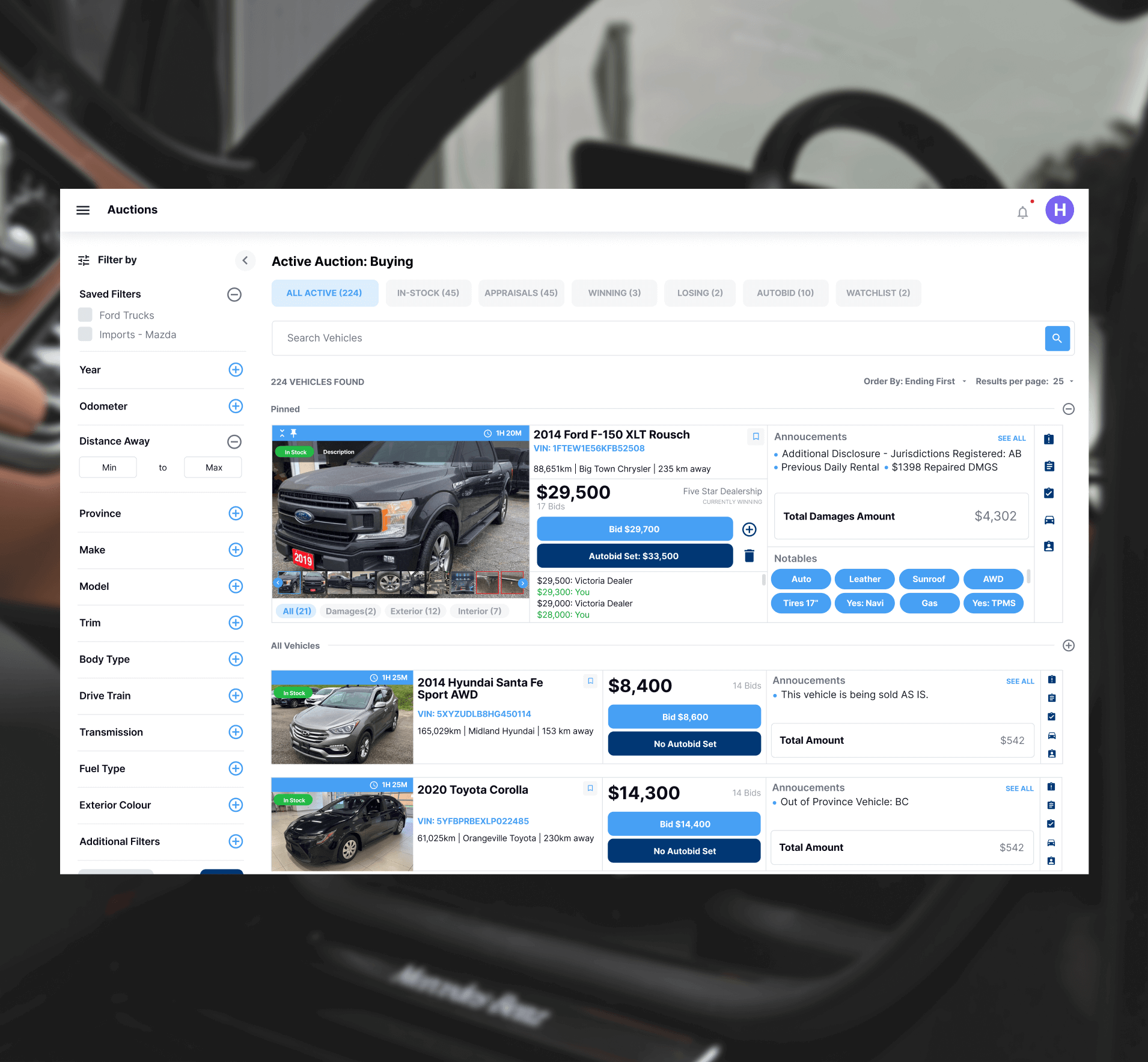 Creating a digital auctioning platform provided many challenges while trying to balance functionality with unique user needs. Many solutions were continually reviewed, discussed and reconsidered throughout the design and development process, to create a platform that brought dealerships together and supported their growth.