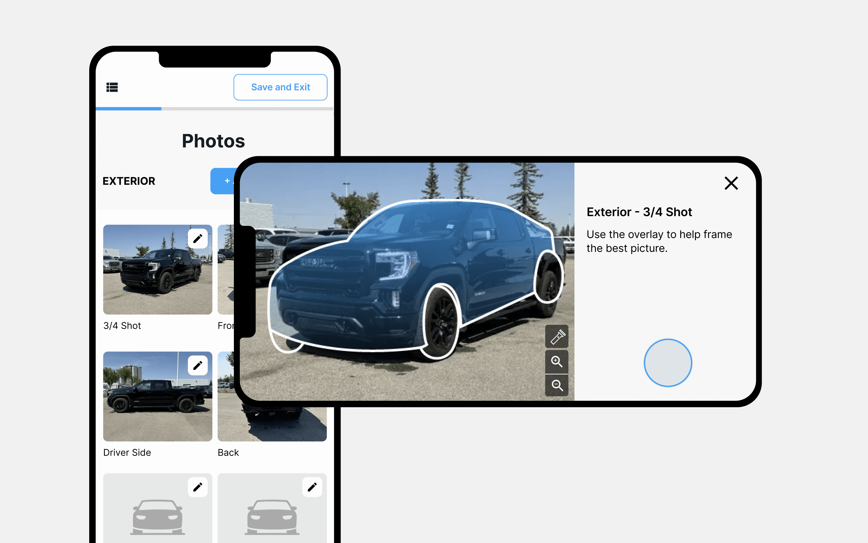 A photo is the first thing that captures a buyer's attention; in fact, inventory listings with 11+ photos generate more views and leads. We knew it was important for sellers to be able to utilize mobile devices when doing a vehicle capture, to make adding photos easy. Not only do sellers have to take a number of photos, they have to take the right photos. The photo capture wizard removes the guesswork for sellers, ensuring they take the necessary and correct types of images buyers are looking for.